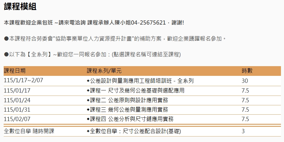 | (課程二) 公差原則與設計應用實務 115/01/24 (週六) 7.5H | |