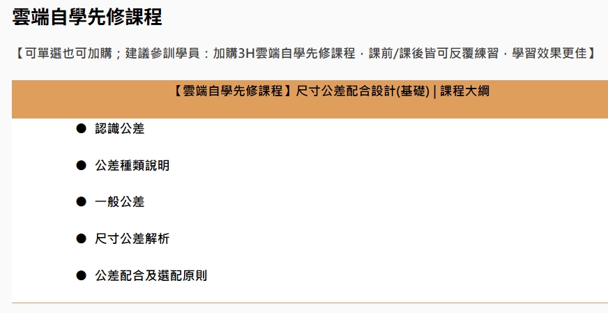 雲端自學先修課程-尺寸公差配合設計(基礎) |