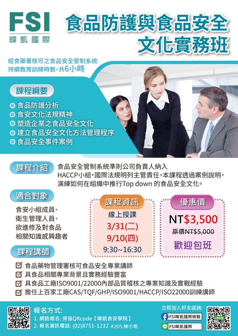 更多課程 請點我 >> FSI 暐凱食安學院