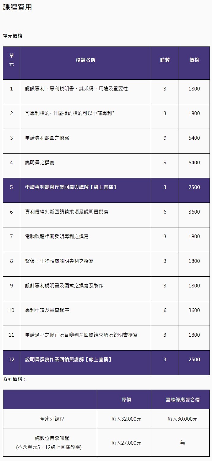 【線上直播課程】申請專利範圍作業回饋與講解 |