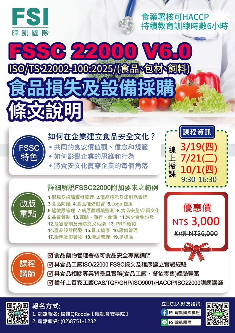 ⚜如果您想成為FSSC22000內部稽核員,絕對不能錯過這堂課!條文內容與重點、執行面一次掌握
