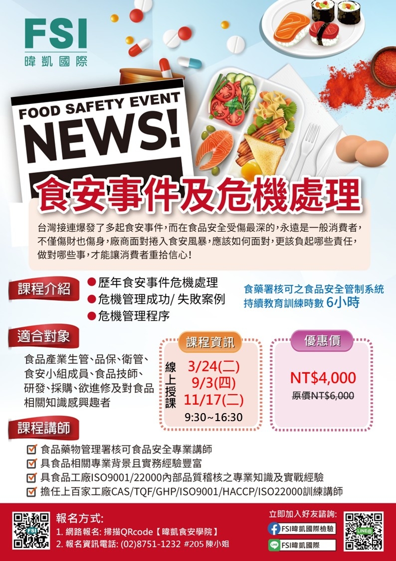 【FSI 暐凱食安學院】衛福部核可持續教育訓練課程~ 開放報名中!~
