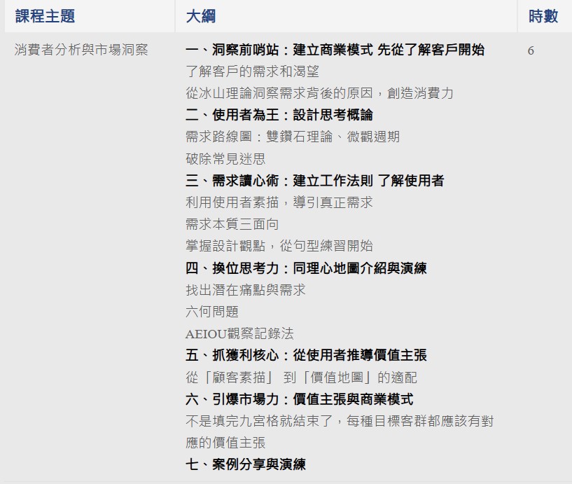 產業與市場兩者密不可分。消費者的需求可能驅動產業發展,而產業趨勢亦會影響消費者決策。當您學習產業分析的宏觀視野時,也需具備消費者分析的微觀視角,才能在產業脈絡下洞察市場需求,建立可獲利的商業模式。本課程涵蓋消費者分析的系統性方法,包括Know-Why、Know-How、Know-What的「黃金圈法則」、使用者素描、設計觀點、同理心地圖等,幫助您掌握消費者行為與需求,不僅有助於前瞻產業發展方向,也是找出商業模式的第一步。
